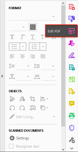 - Click on the ‘Edit PDF’ tool in the right pane.