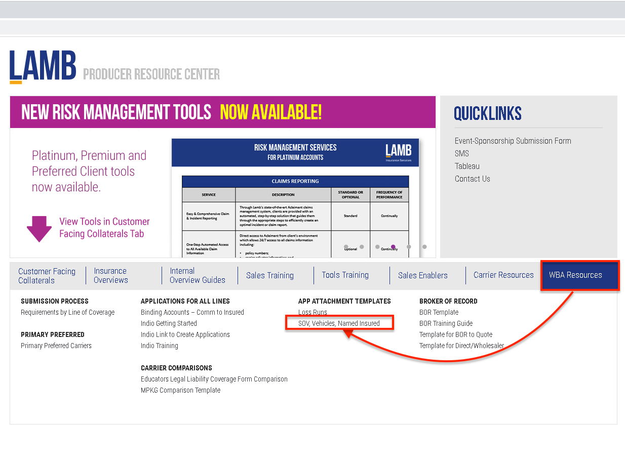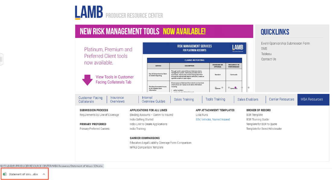 WBA: SOS Vehicles, Named Insured Excel Document Rajani Baral March 27, 2024 20:20 Updated Go to Lamb Producer Resource Center. Click on "WBA Resources". Click on "SOV, Vehicles, Named insured". The user can click on the excel document in the bottom left of the screen. Related to Producer Resource Center Microsoft Excel Excel Comments 0 comments Please sign in to leave a comment.