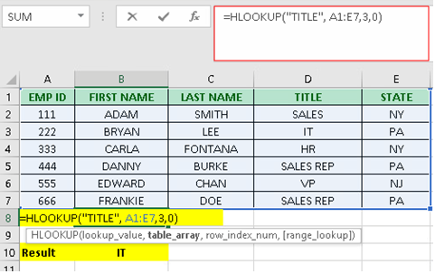 HLOOKUP