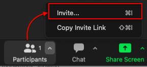 - Click Participants (drop up button) > Invite... OR simply click on Participants > Invite.
