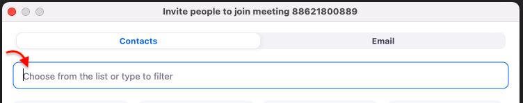 OR - You will land in “Invite people to join meeting...” screen and select “Contacts”.