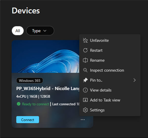 • Click on the three-dot menu (⋯) next to your Cloud PC's name.